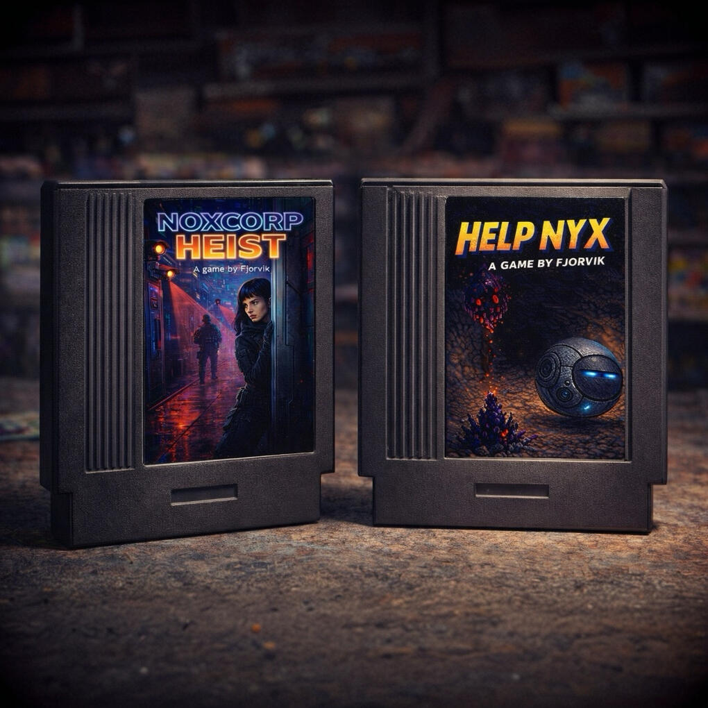 Step into the world of Obsidian Bloom through two browser-based mini-games. Guide Kaiya through the heavily guarded corridors of NoxCorp in NoxCorp Heist, and help Nyx escape the blight-infested tunnels in Help Nyx. Play directly in your browser by clicking the links below.